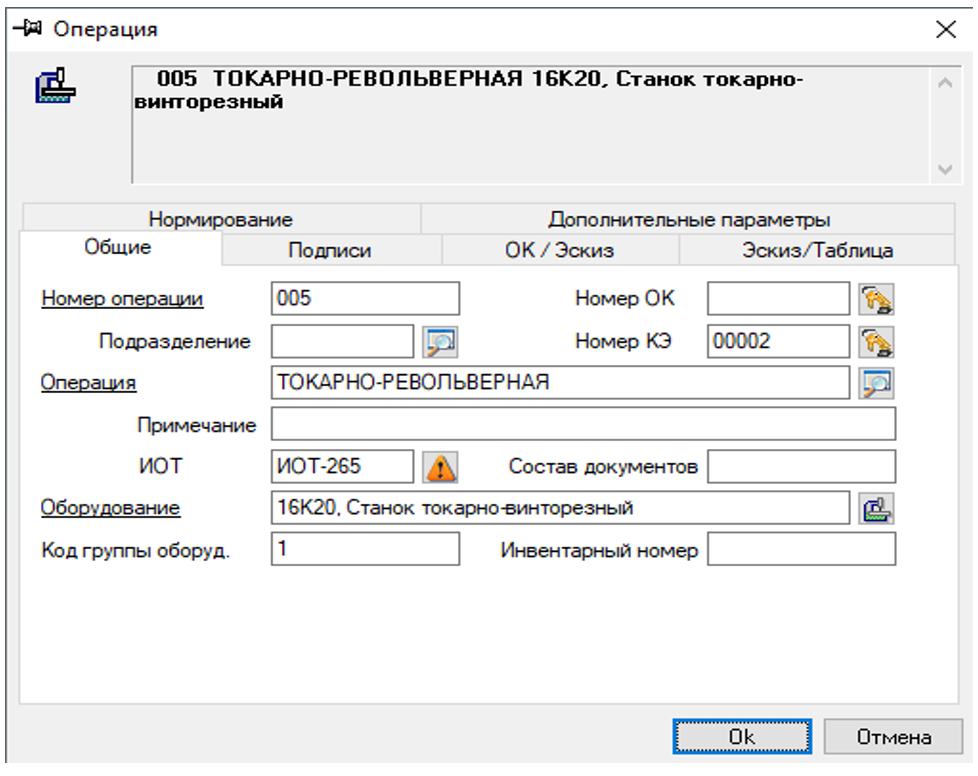 Пример карточки поиска и визуального представления технологической операции в информационной системе
